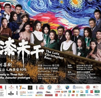 温哥华话剧团始创并注册于2016年,在北京人艺著名表演艺术家冯远征、濮存昕、梁丹妮等艺术家倡议下,由温哥华话剧团团长艺术总监韩艾彤组织创建。作为一个成立9年的年轻剧团,秉承师训“先做人,后做艺”,在北京人艺前辈艺术家的支持下,一直以在海外传播中国戏剧经典为己任。温哥华话剧团从首部经典话剧《阮玲玉》开始,得到社会各界关注和广泛好评,受邀至多伦多与当地剧团进行多场次巡演大获成功。2022年温哥华话剧团还克服疫情困难,排演经典话剧《日出》现代话剧《网红》引爆了后疫情时代温哥华华语文化市场。而话剧《雷雨》更是在政府及社团的支持下于温哥华和维多利亚等地巡演掀起数场风暴。2024年爆笑话剧《油漆未干》的多场次演出更是华人首次挑战小女皇剧院中文演绎英文字幕吸引各族裔观众好评如潮,再创喜剧新高度!2025年两部北京人艺经典大戏,和原创儿童剧接踵而来,力求专业求精,欢迎各年龄段演员加入。
